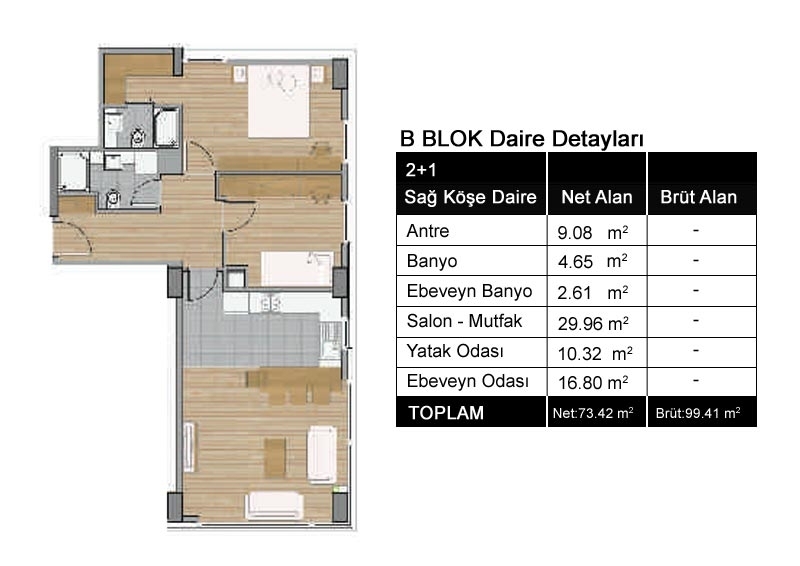 2+1 Sağ Köşe Daire